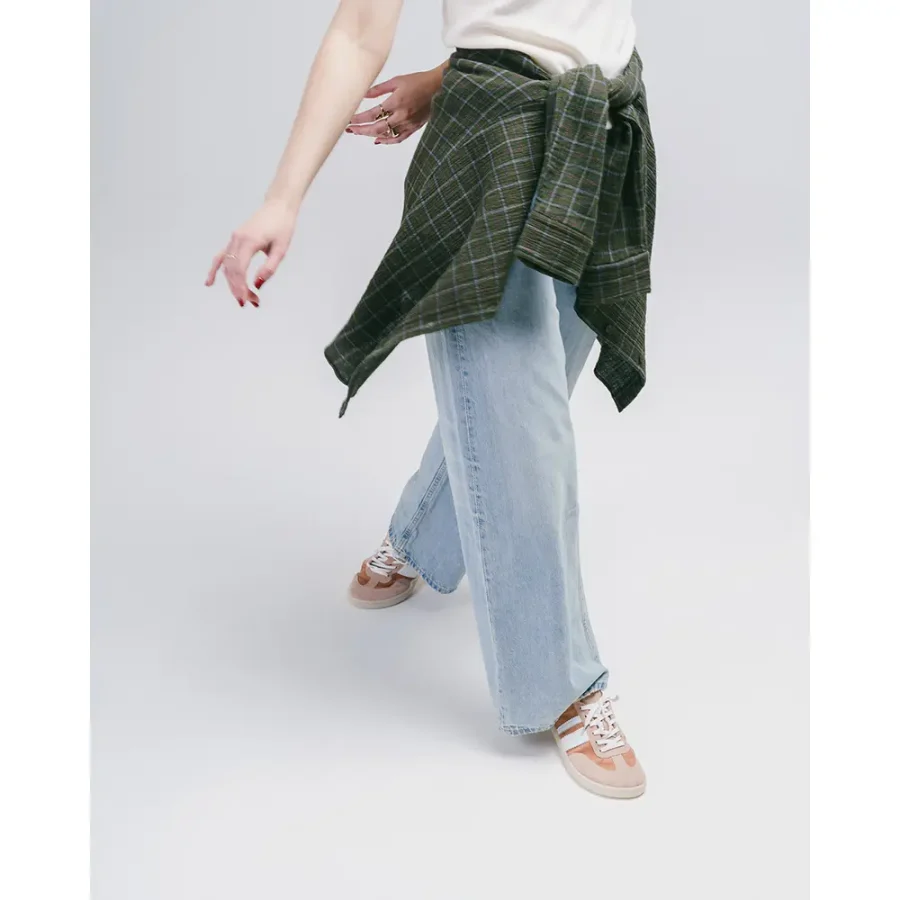 Cholewka wykonana z miękkiego zamszu została wzbogacona o kontrastujące, białe pasy na boku, które nadają butom dynamiki. Tradycyjne sznurowanie nie tylko pełni funkcję ozdobną, ale pozwala na precyzyjne dopasowanie szerokości buta do stopy. Brak zapiętka sprawia, że zakładanie butów jest błyskawiczne – wystarczy wsunąć stopę, by cieszyć się gotowością do wyjścia.
