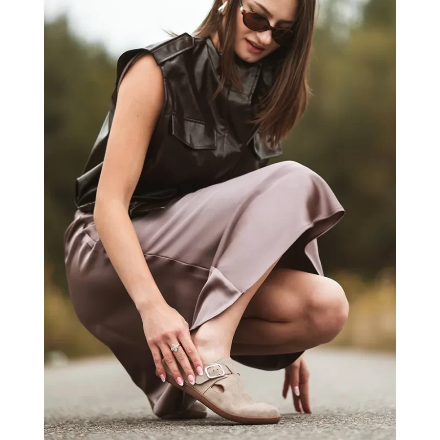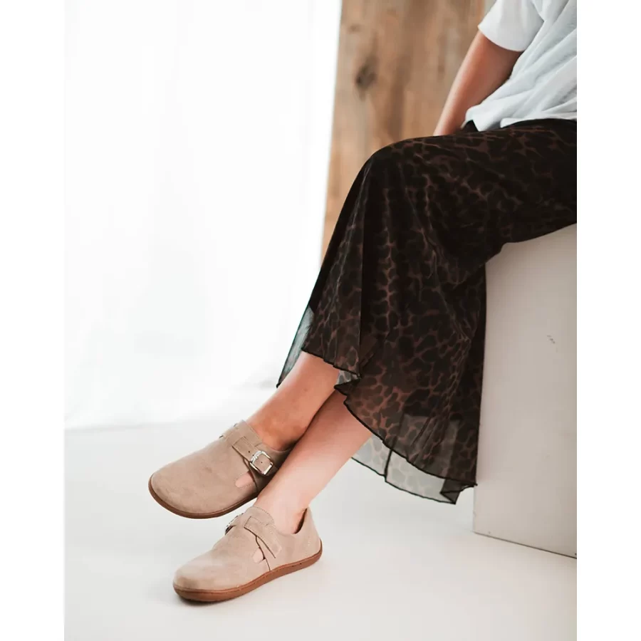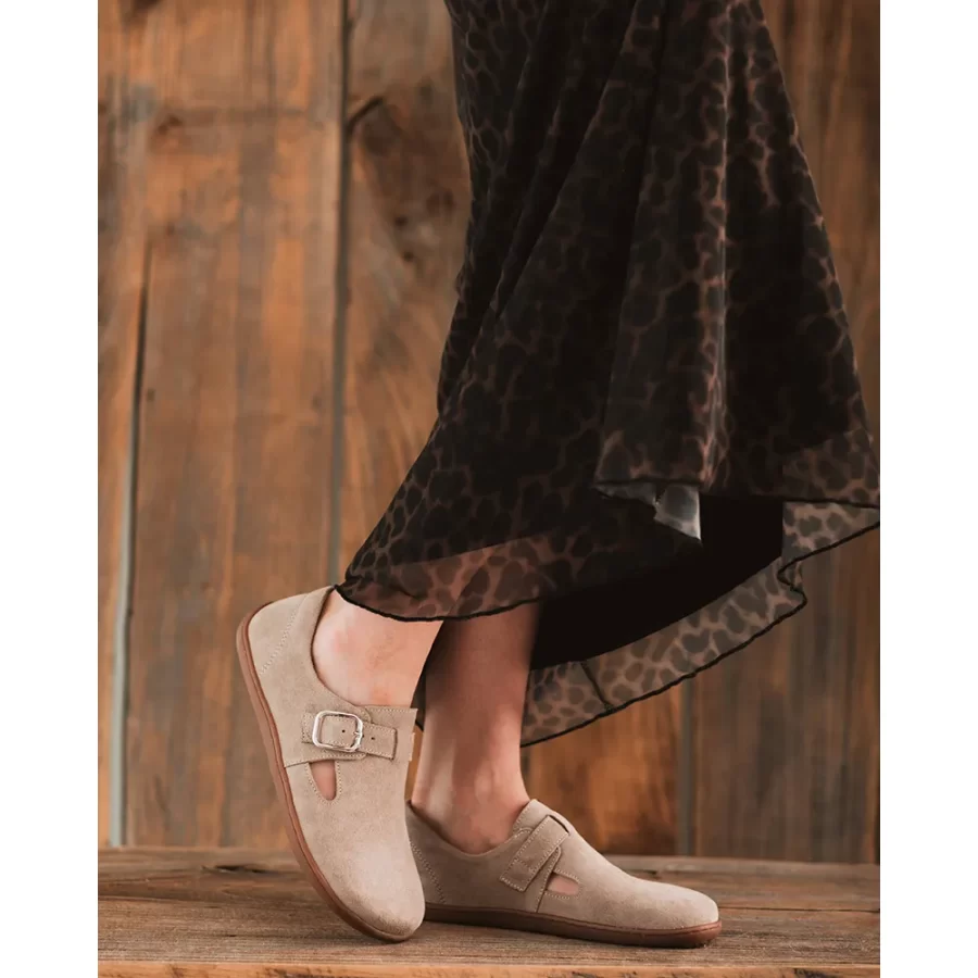 Przenieś lekkość i swobodę letniego spaceru do swojej codziennej garderoby dzięki modelowi Desert Rose. Te wyjątkowe mokasyny na płaskiej podeszwie to idealne połączenie minimalistycznego designu z naturalnym komfortem. Ich subtelna, beżowo-szara kolorystyka (taupe) oraz miękka tekstura zamszu dodają każdej stylizacji nuty niewymuszonej elegancji.